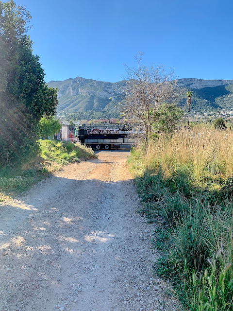 Was soll ich sagen, wir haben das so gerade eben geschafft. Auf geht die Fahrt. 95% des Weges sind uns ja bekannt. Doch die letzten fünf Prozent, auf die kommt es an! Wir folgen dem himmelblauen Smart in kurzer Distanz. Bloß kein anderes Fahrzeug in die Lücke lassen! Ab der "Clinica Glorieta" wurde es dann ernst: Das Verkehrsaufkommen stieg drastisch, Kollonnenkriechen war angesagt. Plötzlich stoppt Dieter, blinkt nach links und ordnet sich ein, ungeachtet der schraffierten Fläche und durchgezogen Linie. Er biegt tatsächlich nach links ab! Jetzt nur nicht den Anschluß verlieren! Also folge ich ihm. Es wird abenteurlich, die Straße immer enger, vollgeparkt mit PKW´s. Dann einen Schotterweg nach rechts unter die Räder nehmen und........es wird spannend. Wir erreichen einen Platz auf dem schon etliche Autos parken, ich befürchte schon, wir müssen das hier abbrechen. Doch, welch ein Glück, eine Lücke ist frei. Auch Dieter kann seinen Smart abstellen. Seine Erklärung zu der Situation: Da unten auf dem echten Parkplatz steht ein Zirkus mit seinem Fuhrpark und blockiert somit die ganze Fläche. Aber wir legen nur noch eine kleine Entfernung zu Fuß zurück und sind angekommen!